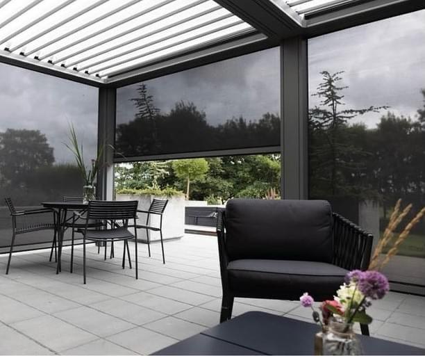 5️⃣ Boční zasklení, screeny a sítě: z pergoly vzniká obytná zóna